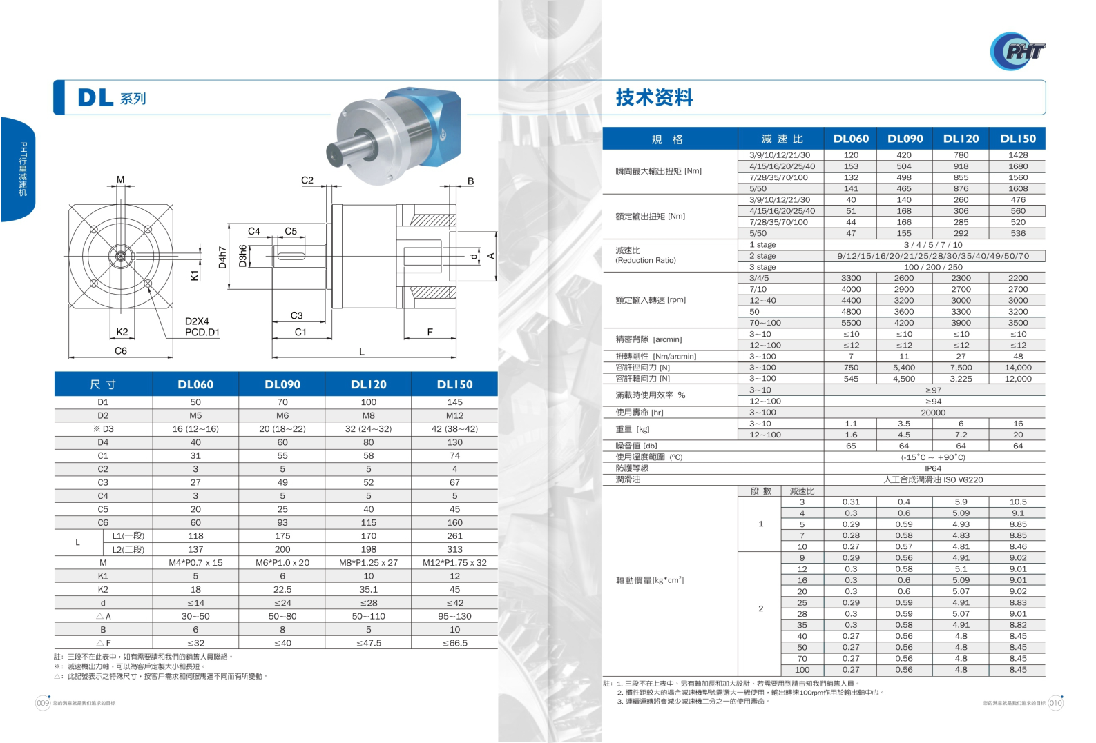 DL 系列是經濟型方型法蘭高精度減速機。 品宏減速機的軸承是用NSK品牌的,齒輪經過碳化,故精度和剛性都比較優越!減速機出力軸是可根據客戶的要求去定制大小和長短的。