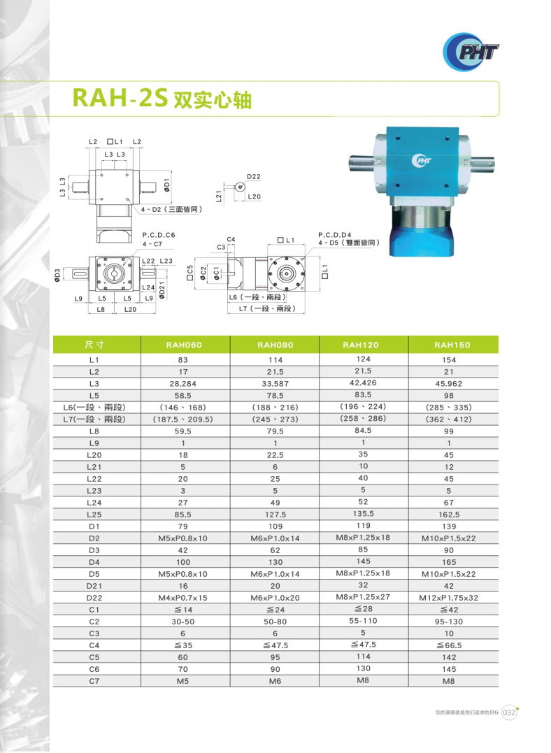 RAH-2S系列是雙實心軸設計。 鋁合金材質可提高散熱能力,減緩溫升現象造成影響。 多樣化的出力軸可因應各種場合,客制化的入力端可搭配各式馬達。 提供各式特色之減速機,供使用者依需求選購。 特殊油封設計,正常使用下不需保養亦不用更換潤滑油,可延長使用壽命。 各式特色,體積小,省空間,噪音低,輸出扭矩高,安裝容易,可搭配馬達型號廣泛。 RAH搭配DM,一體成型的齒輪組,可有效的減低噪音。 RAH搭配DH,最佳的性價比,可廣泛應用于各種場合。