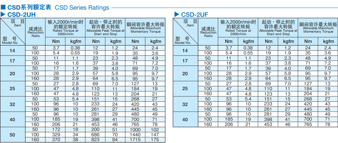 新型Harmonic Drive CSD系列順應(yīng)市場要求實現(xiàn)了大膽創(chuàng)新的小型化。 CSD-2UH體積比轉(zhuǎn)矩容量相同的CSF系列更小。 CSD-2UF為中空結(jié)構(gòu),輸出側(cè)軸承的負(fù)載容量是SHD系列同型號的約2倍。 諧波發(fā)生器:橢圓形凸輪的外圈上嵌入薄型的滾珠軸承,整體呈一橢圓形狀的零件。軸承的內(nèi)圈固定于凸輪之上,外圈則介由滾珠彈性變形。一般安裝在輸入軸上。 柔輪:具有薄壁杯型的金屬彈性體的零件。杯的開口部外圈刻有齒形。柔輪的底部稱為膜,通常安裝到輸出軸上。 剛輪:剛性環(huán)狀的零件。內(nèi)側(cè)上刻有與柔輪同樣大小的齒形,且比柔輪多2個齒數(shù)。一般固定在外殼上。