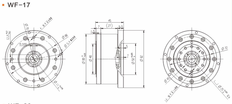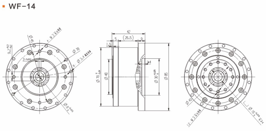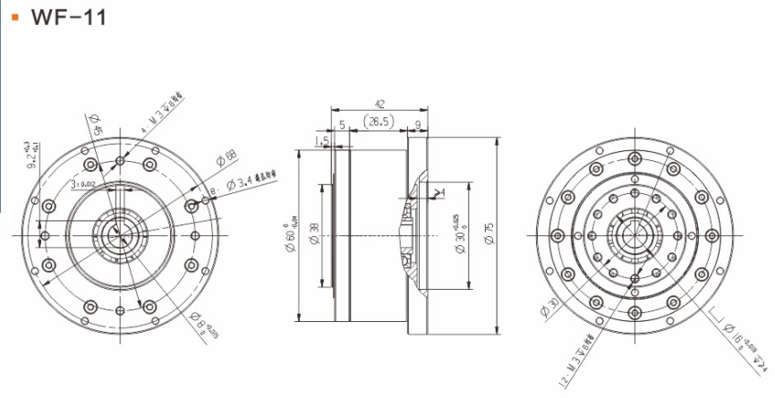 具有傳動效率高、工作平穩(wěn)、噪聲低、結(jié)構(gòu)緊湊、重量輕、體積小、使用可靠、壽命長、減速比范圍大等優(yōu)點。 輕量流線型設計、鋼質(zhì)本體、機型輕薄短小、體積比傳統(tǒng)行星式減速器大幅縮小、可節(jié)省安裝空間。 真圓齒形、齒腹大、抗壓性強、不干涉不崩齒、可承受頻繁正逆轉(zhuǎn)和瞬間急停慣性沖擊。 雙排結(jié)構(gòu)、負載分散、機理平衡、圓形齒輪設計、磨損小、噪音和溫升要比其他減速器低。 線接觸傳動、摩擦系數(shù)小、效率高、出力扭矩大、慣量低、是一種精密的剛性傳動,剛性傳動軌跡也最接近理想工作曲線,這和部分原件使用滾動件的擺線式或和諧式傳動設計有些許不同。 由于雙共軛工作曲線和撓性軸銷輸出裝置的改良設計、本機高精度背隙可控制在弧秒范圍。 長效性油脂潤滑、不需要保養(yǎng)、安裝方向不受限。 人力方式有筒夾緊式和鍵槽式供選用。